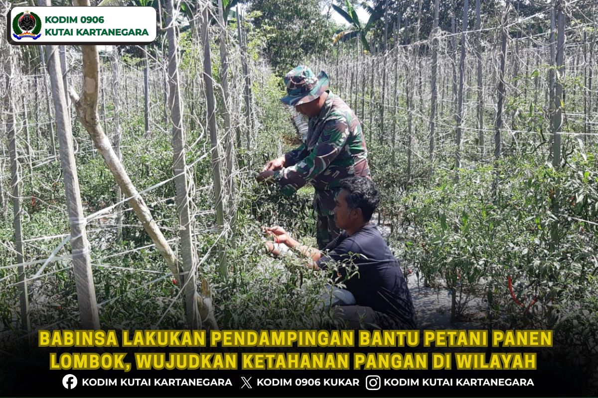 Kutai Kartanegara. investigasi88.com- Anggota Babinsa Koramil 0906-08/Muara Kaman Serka Nurkholis yang selalu aktif di lapangan turut membantu petani yang ada di wilayah binaan dimana Babinsa turut membantu memanen tanaman lombok dilahan milik bapak Edi bertempat di Desa Panca Jaya Kecamatan Muara Kaman, Rabu 22/4/26.