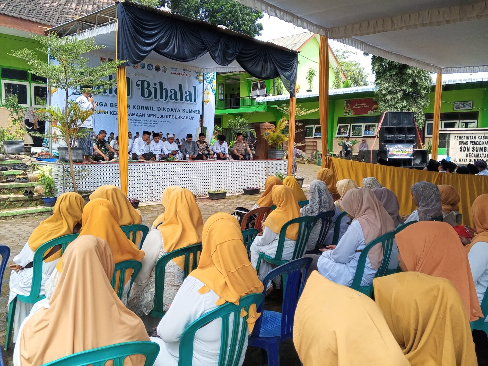Kegiatan yang mengusung tema *“Mengukir Kebersamaan Menuju Keberkahan”* ini dihadiri oleh unsur PGRI, Korwil, para kepala sekolah, guru, serta jajaran Forkopimka Kecamatan Sumber.