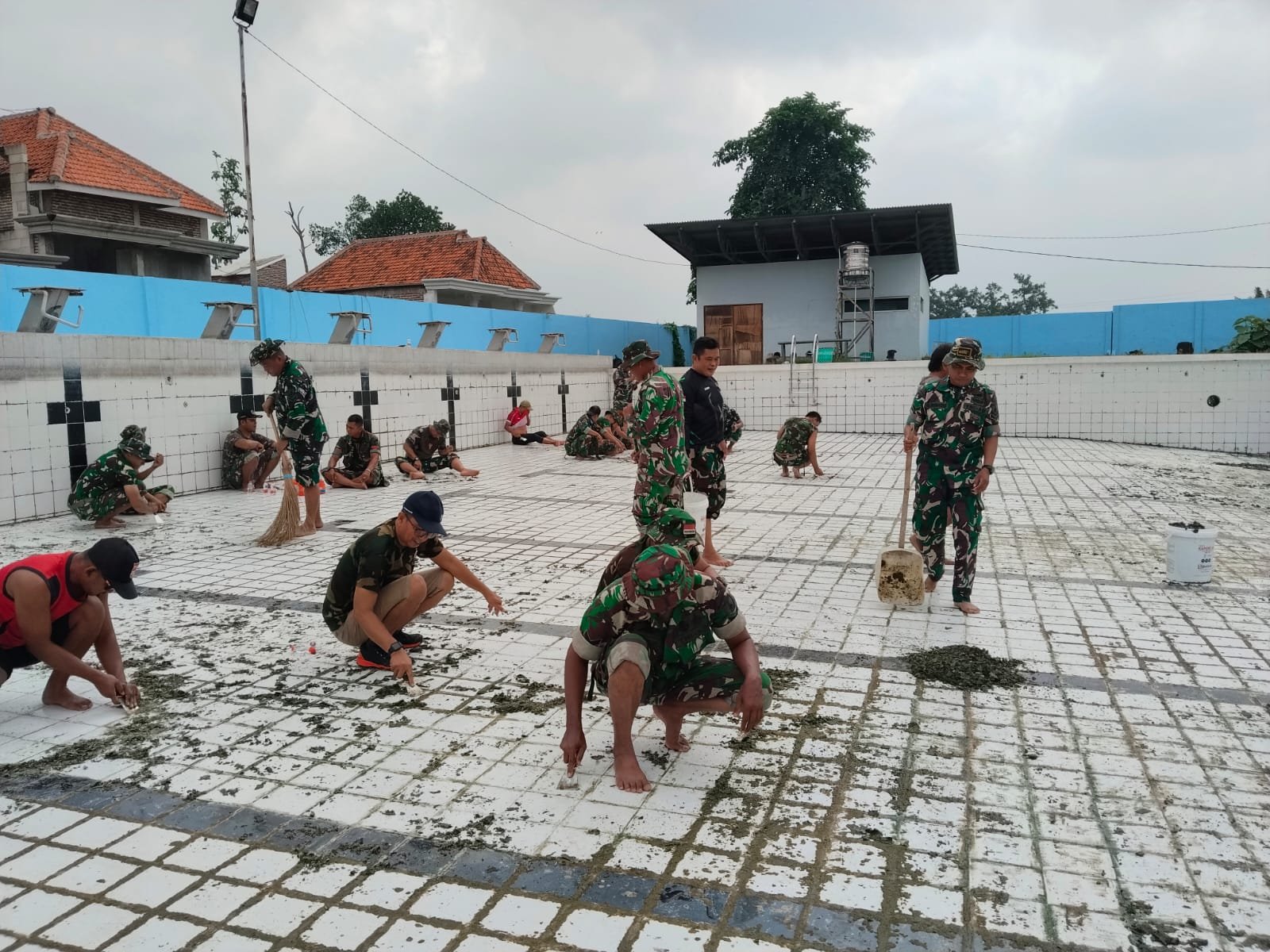 Probolinggo — Koramil 0820-02/Wonoasih mempelopori aksi sosial berupa pelaksanaan kegiatan bersih-bersih di GOR Mastrip yang berlokasi di wilayah Kelurahan Kedopok, Kota Probolinggo, Rabu (18/2).