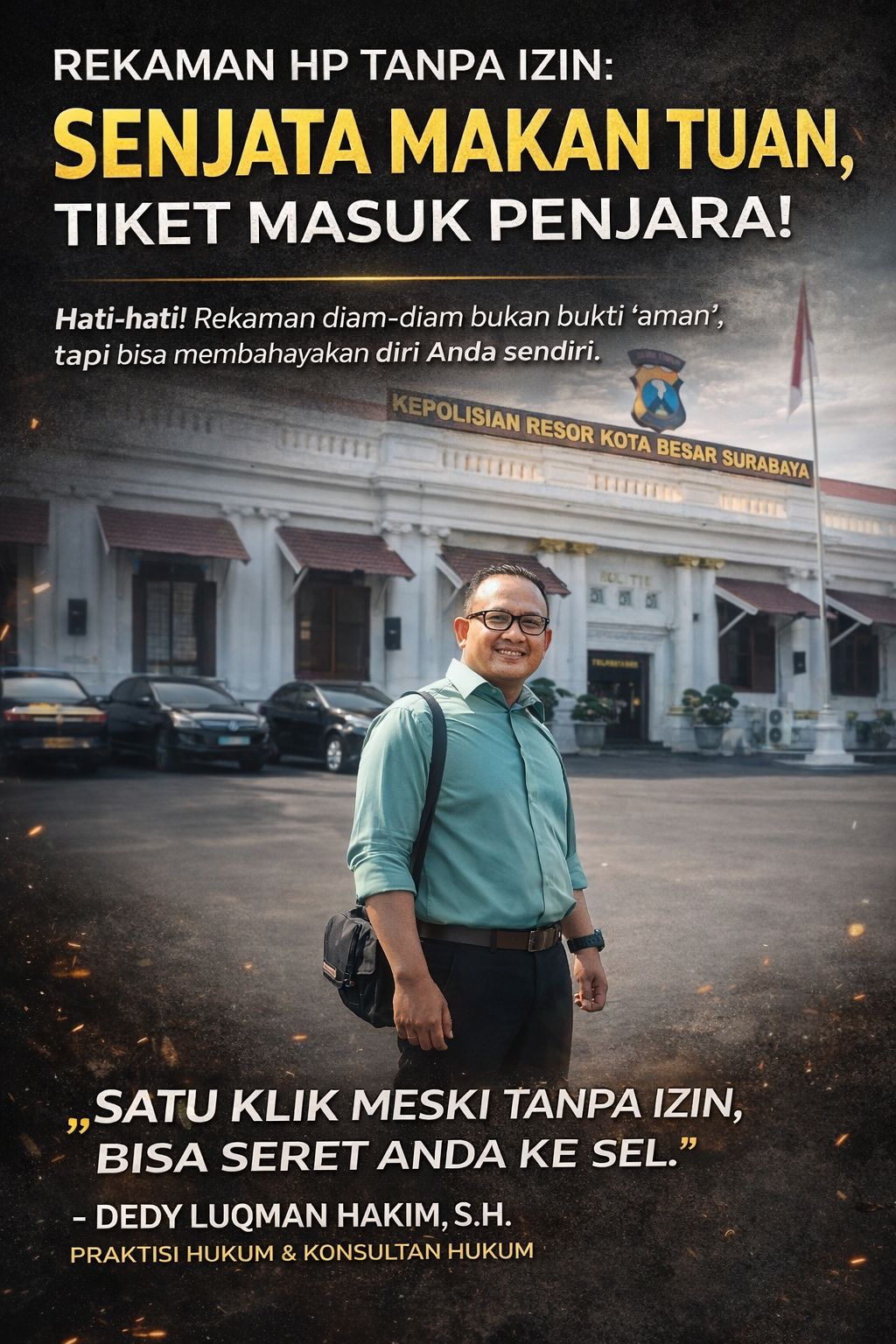 KOTA KEDIRI – Jangan pernah berpikir bahwa tombol “record” di ponsel Anda adalah alat perlindungan diri. Dalam praktik hukum yang saya tangani, tombol itu justru lebih sering menjadi tiket masuk ke ruang interogasi daripada menjadi penyelamat di ruang sidang.